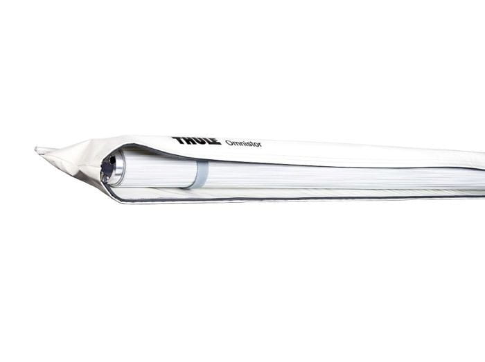 Thule Omnistor 1200 to ręczna markiza w pokrowcu przeznaczona do montażu w szynie przyczep kempingowych. Markizę należy wsunąć w prowadnicę bez konieczności wiercenia. Zarówno nogi jak i wsporniki markizy chowają się w pokrowcu a system ich jednoczesnego rozkładania mocno ułatwia rozstawienie markizy. Roleta posiada bardzo prosty w obsłudze system napinania. Wystarczy przesunąć dźwignię zapadki w przód i w tył aby zapewnić idealne napięcie tkaniny. Materiały, z których wykonana jest roleta są odporne na warunki atmosferyczne. Pokrowiec jest dodatkowo pokryty warstwo PCV chroniącą przed promieniowaniem UV i deszczem.