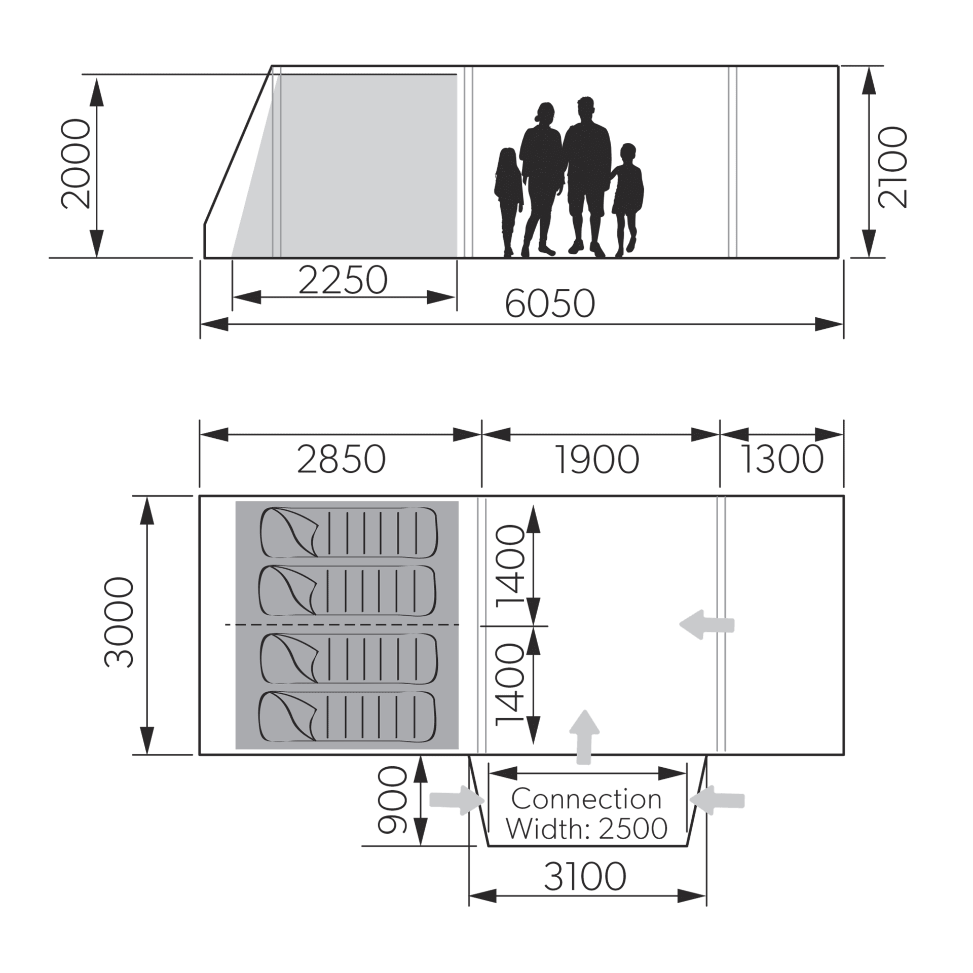 - przestronny nadmuchiwany przedsionek o szerokości 3 m