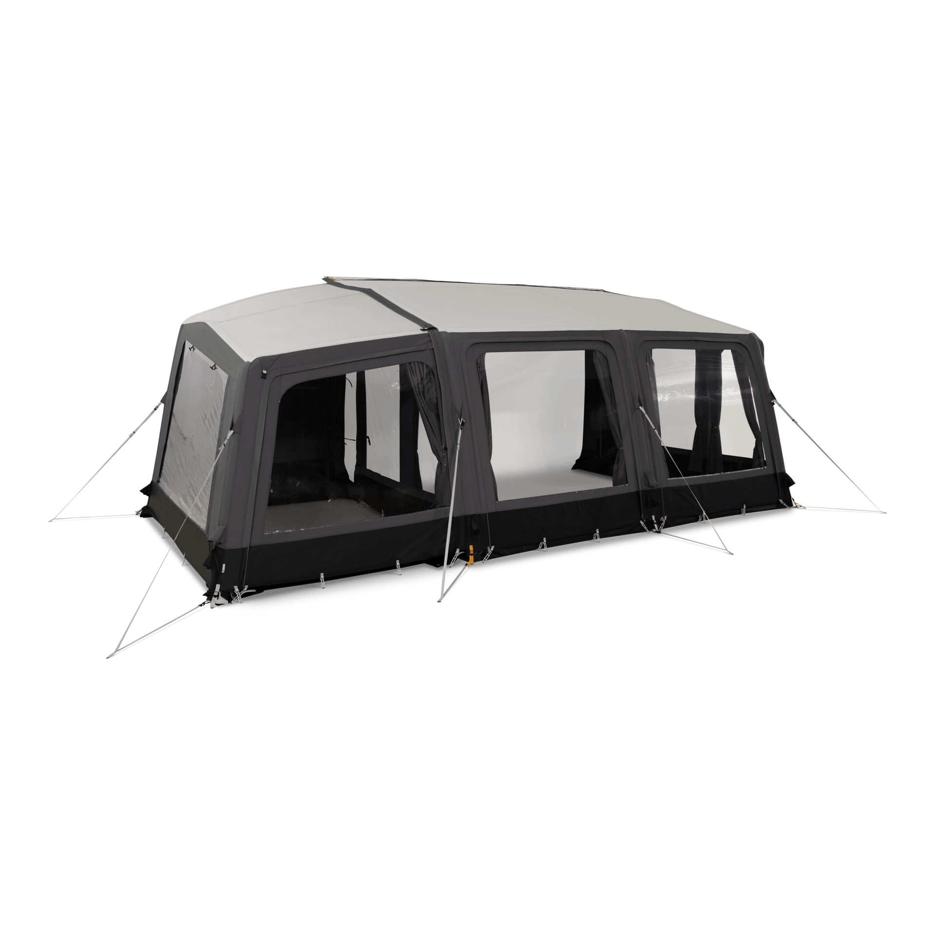 Grande AIR Stay EXT L/H S to nadmuchiwane rozszerzenie przedsionka zaprojektowane jako dodatkowa przestrzeń użytkowa, sprawdzi się zarówno jako miejsce do przechowywania, jak i dodatkowy pokój gościnny. Montaż jest szybki i wygodny — wystarczy przypiąć element do przedsionka i napompować ramę AirFrame.