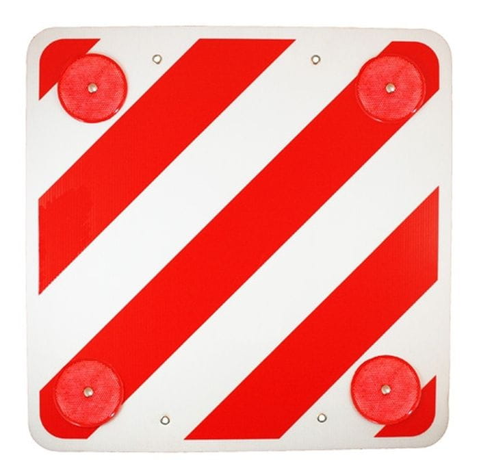 Lekka i wytrzymała tablica ostrzegawcza przeznaczona do montażu z tyłu przyczepy kempingowej lub kampera. Stosowana na wystające elementy poza tylny obrys pojazdu, takie jak bagażnik rowerowy czy kieszeń pokrowca na rowery. Wykonana z PVC i wyposażona w cztery czerwone odblaski zwiększające widoczność. Obowiązkowa w większości krajów UE. Uwaga: produkt nie spełnia norm włoskich i hiszpańskich.
